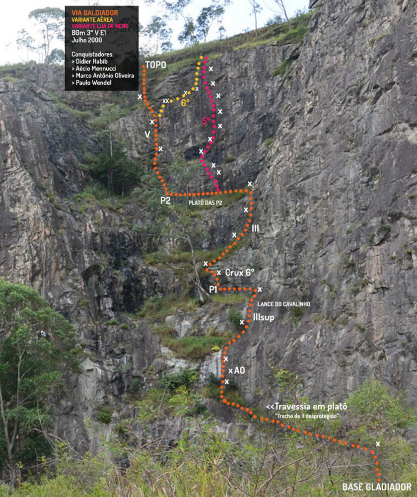 O trecho final compartilha o crux (5ºsup) da "Variante Aérea".