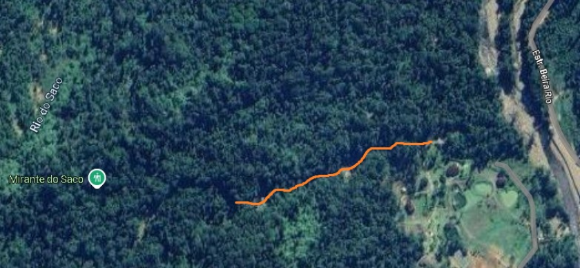 Descrição: É uma linha que sobe a elevação que dá acesso ao Mirante do Saco por uma sucessão de paredes ao lado de pequenas cachoeiras e linhas de água. O início se dá pelas vias Ipon e Wazari e segue para cima aproveitando buracos e fussuras para proteger em móvel. A descida é por rapel e desbordando pela mata.