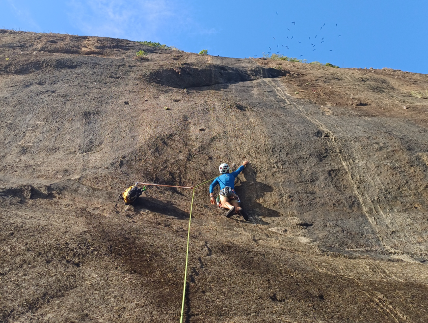 Descrição: É a via mais pressão do setor, com um início de VIIb e um VIIc boulderístico mais acima. Via bem protegida.