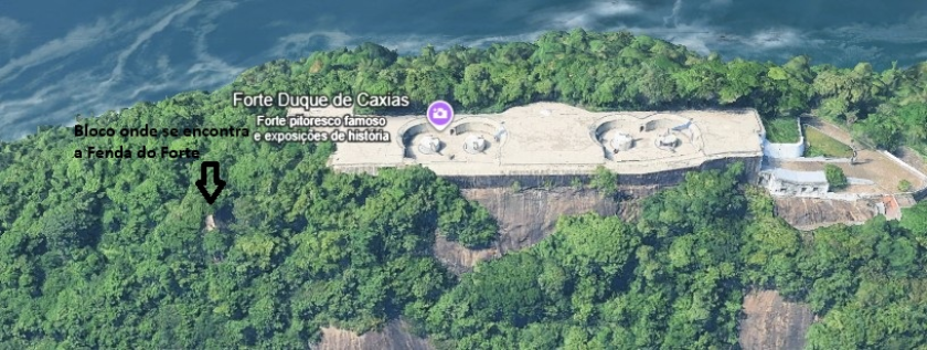 Descrição: Fenda localizada no cume do Morro do Leme em uns blocos bem ao lado das instalações.