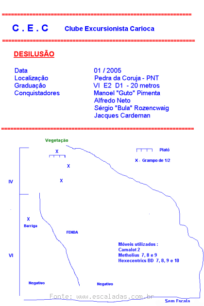 Até o momento, temos 10.445 vias cadastradas em 1.828 locais de 441 cidades de 24 estados brasileiros, sendo 4.865 vias Tradicional Clássica, 4.779 vias Esportiva, 645 vias Bouldering, 64 vias Big Wall, 8 vias Via de descida, 69 vias Artificial, 9 vias Psicobloc e 6 vias Tradicional Esportiva.