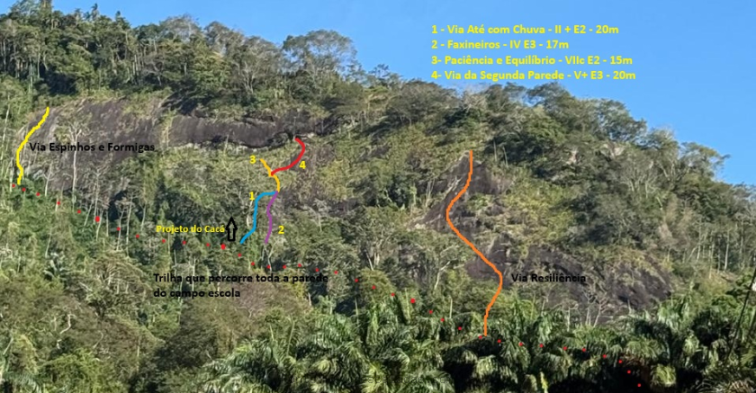 Descrição: Via em móvel que sai da terceira chapeleta da Via Paciência e Equilíbrio e vai na direção de duas árvores que se destacam na base da segunda parede.