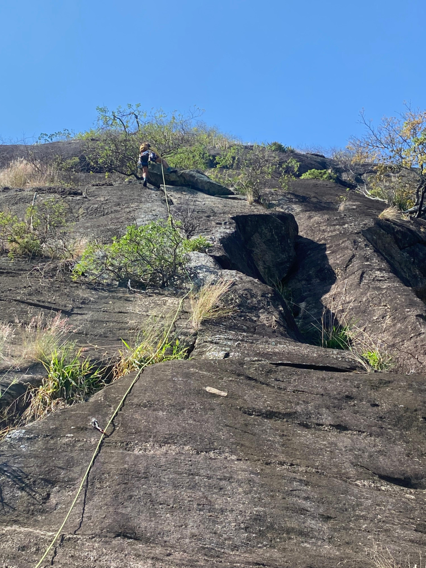 Descrição: Curta via de escalada na Serra dos Pretos Forros, na parede que fica exatamente em cima do Túnel da Covanca. A via fica na mesma parede das vias Alforria, Ex-Escravo e Diedro Água Santa.