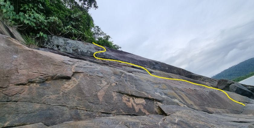 Descrição: Segue em diagonal para a esquerda e sobe pela "barriga" até encostar na vegetação.