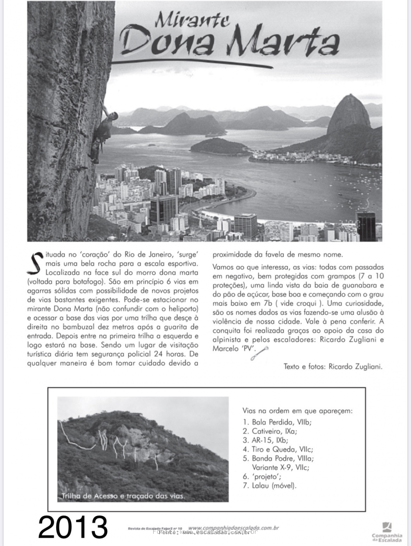 Dados da Via Rio de Janeiro > Rio de Janeiro > Falésia Mirante Dona Marta > Tiro e Queda