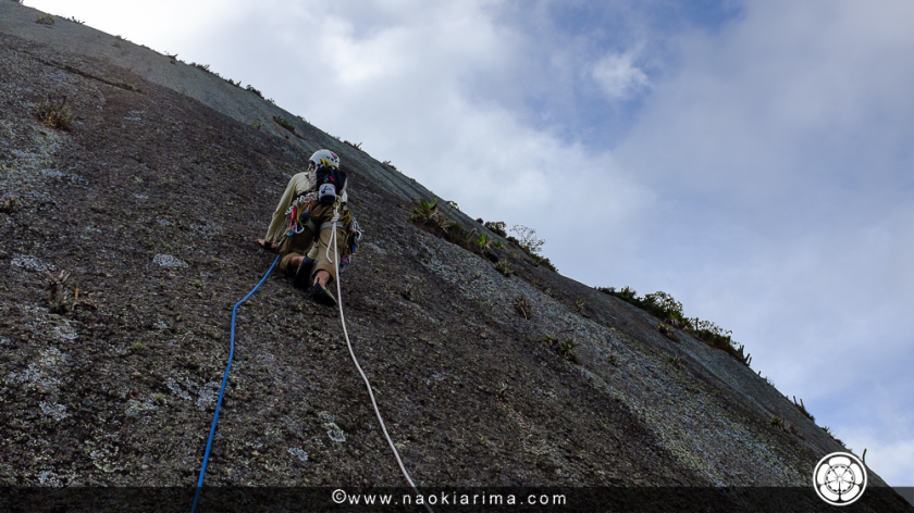 -3ª enfiada, 55 m - crux IIIsup: após a segunda proteção segue em diagonal à esquerda;