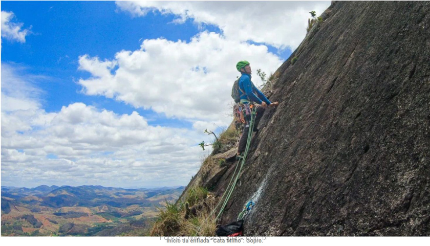 1a enfiada - A primeira enfiada é a continuação do costão, marcado por um trecho mais inclinado que é fácil, mas exige atenção. Vencido o lance, a pedra perde inclinação e um veio de granito fino com muitos buracos leva diretamente a um platô onde há uma parada dupla P1. Levar Camalot #2.