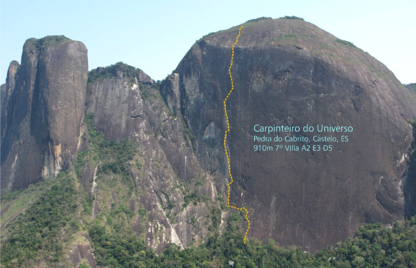 Descrição: Em setembro de 2024, meus parceiros Valdesir Machado, Willian Lacerda, Daniel Amorim e Javier Franco e eu pegamos a estrada de Curitiba, no Paraná, percorrendo 1500 km até chegar à Pedra do Cabrito, na cidade de Castelo, Espírito Santo. Já tínhamos estado na região em outras duas ocasiões, abrindo vias incríveis na montanha à esquerda, chamada Pedra do Fio. O lugar é repleto de enormes paredes de granito e pouquíssimas vias.