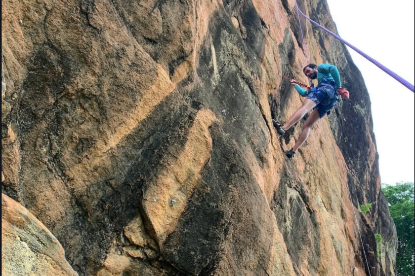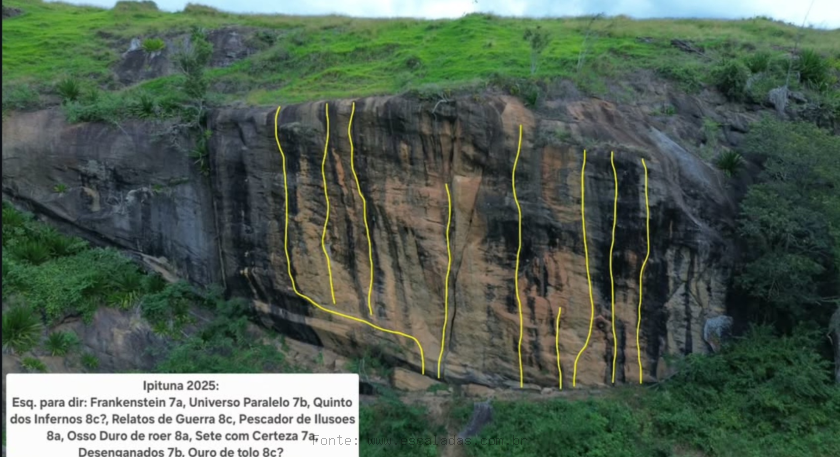 Descrição: Via começa uma saída de Boulder bem negativa, perdendo inclinação em seguida mas seguindo sempre levemente negativa.