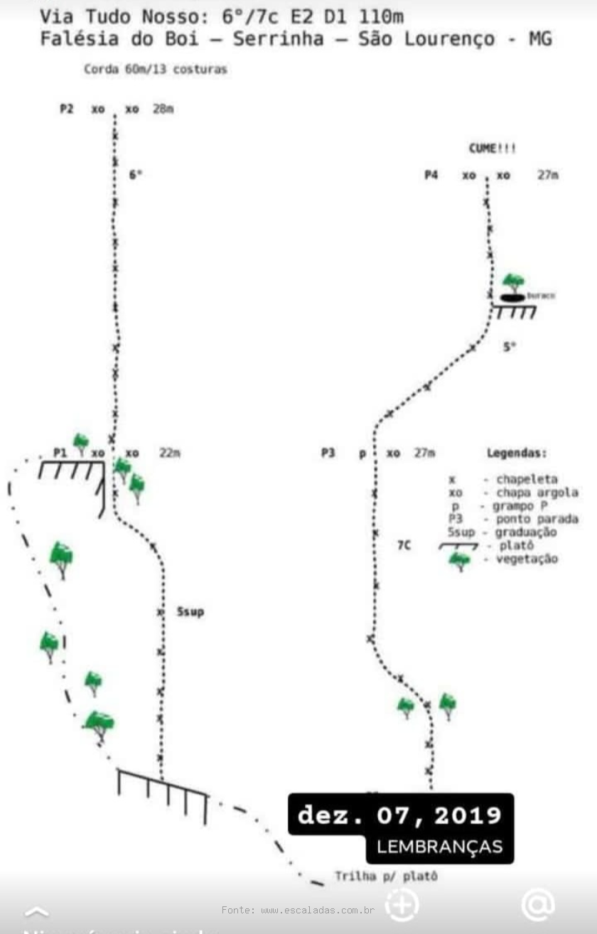 Dados da Via Minas Gerais > Dom Viçoso > Falésia da Serrinha > Via Tudo nosso