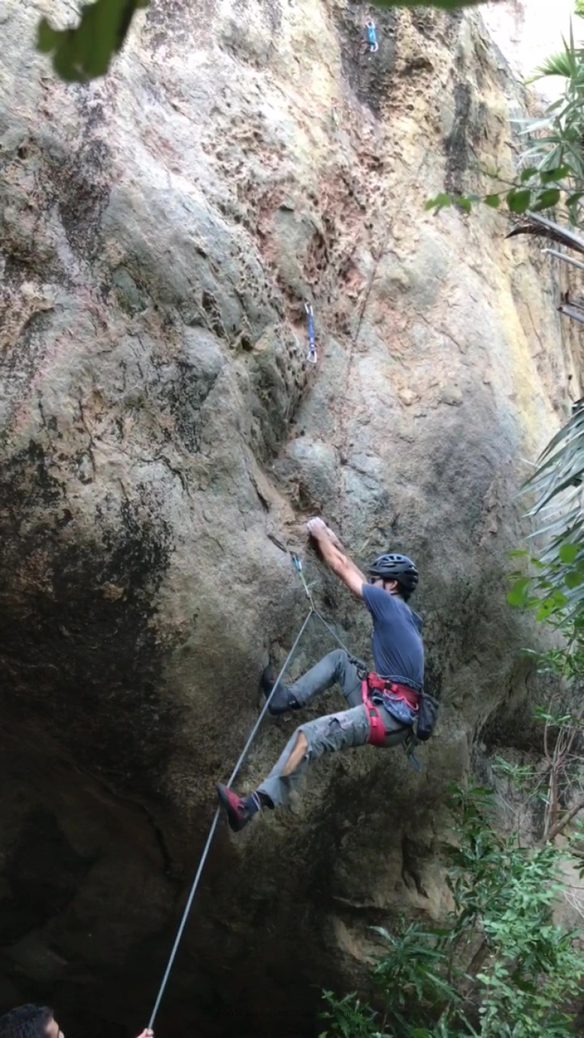 Descrição: Escalada esportiva curta, começa na primeira chapeleta, use um clipstick e se puxe na corda até ela.