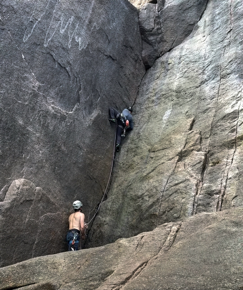 Descrição: Diedro localizado no encontro da parede principal com a "asa" da Gruta do Oratório. Boas proteções em friends (nuts opcionais).