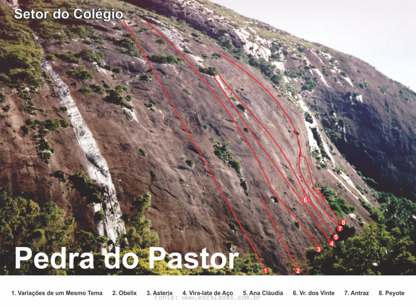 Descrição: Localizada entre os paredões Ana Cláudia e Peyote, a via começa utilizando o primeiro grampo desta última. É bem protegida em sua parte inicial, mas no 2º esticão tem as proteções um pouco distantes.