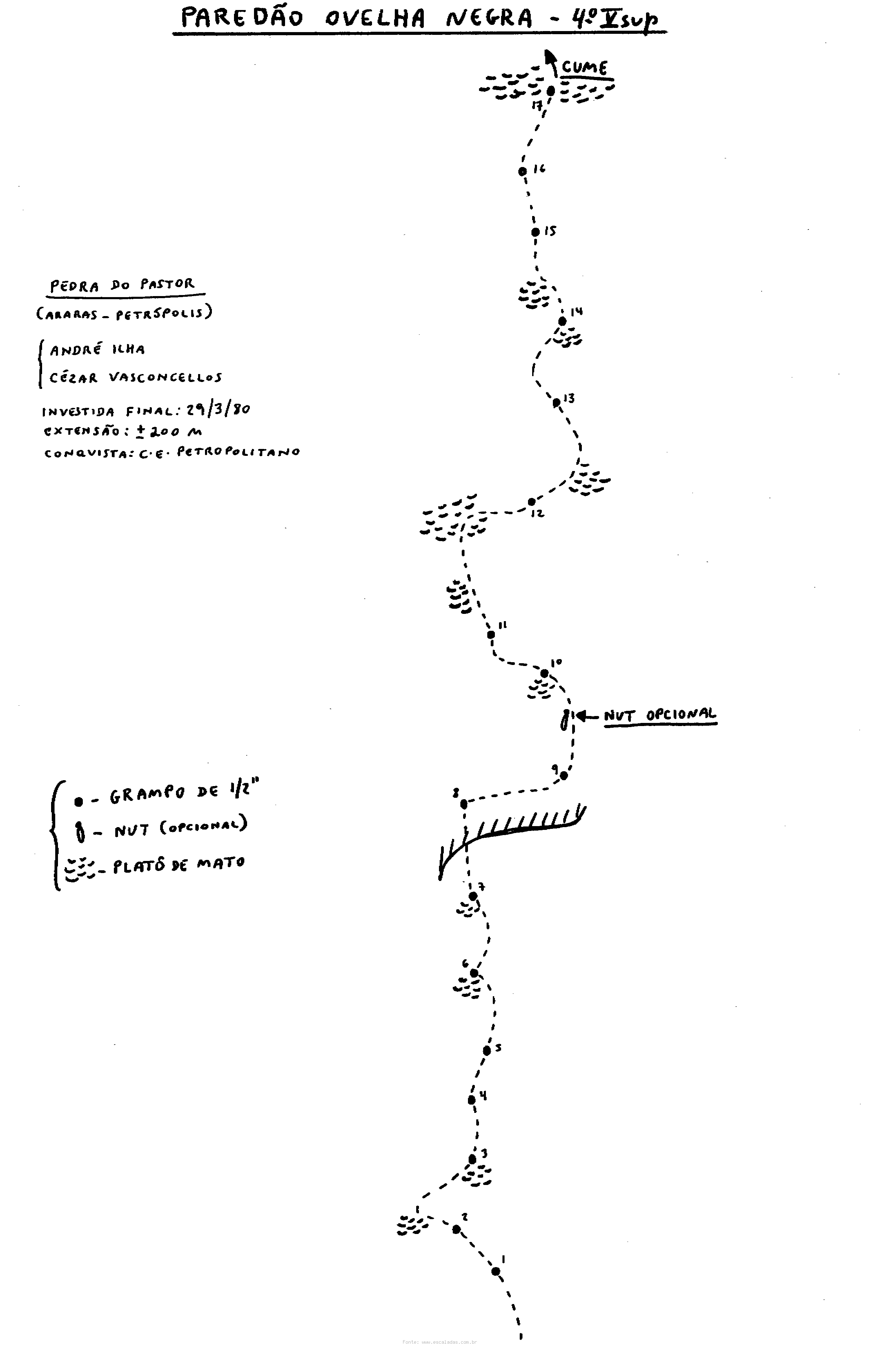 Descrição: Tem como característica principal a sequência de platôs óbvios. Um jogo de Nuts pode ajudar nas proteções. Por ser pouco frequentada, é necessário abrir caminho até a base.