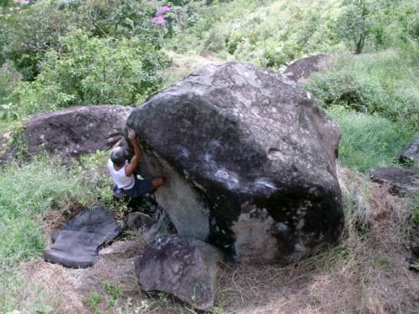 Descrição: Lance em aresta curta, localizado em Boulder no Setor Pic-nic.