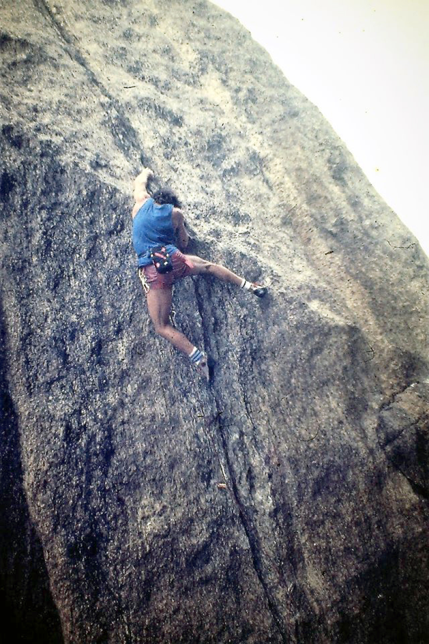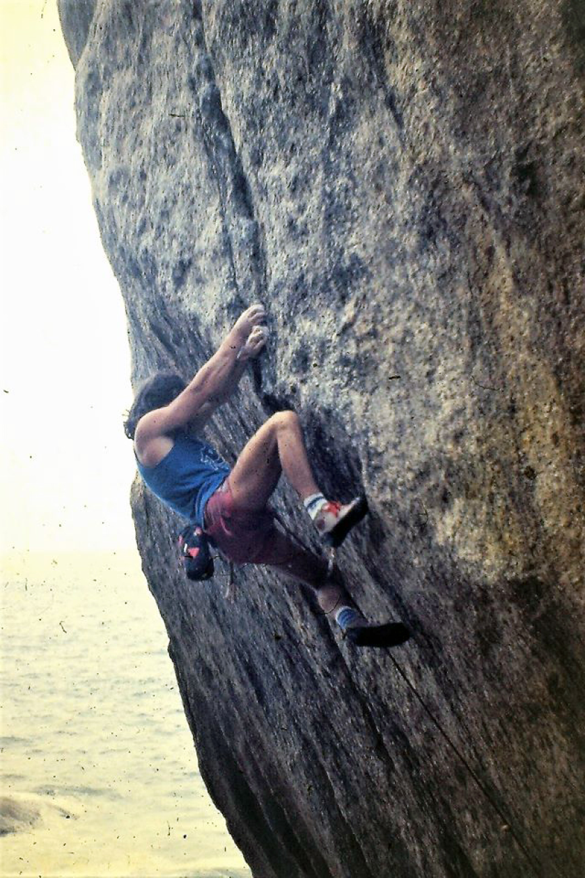 Wolfgang Güllich durante a conquista da via, em 1987.