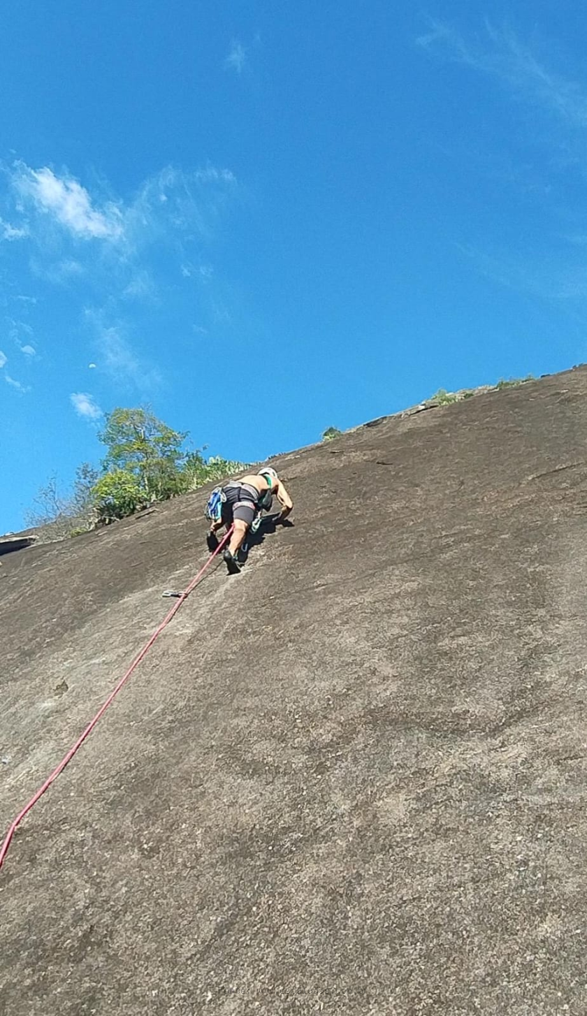 Descrição: Excelente via pra quem quer começar a arriscar a guiada na casa do VI grau. Via com agarras um pouco quebradiças, protegida nos lances de graduação mais alta. Uma aderência de respeito!