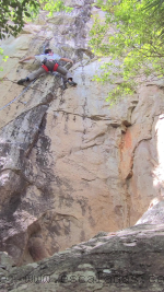Descrição: Via mista, vertical e levemente negativa, pega na resistencia. Possui uma parada no meio pra rapel. Se fizer só até a primeira parada deve dar um 7b.