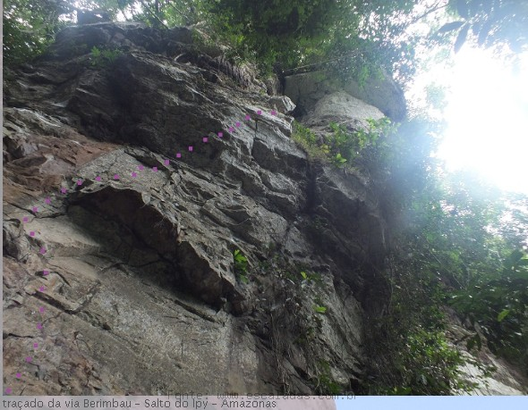 Descrição: Os primeiro 30m são bem protegidos e é onde está o crux. Os últimos 15m são em móvel e é um E3. A via passa por pequenos tetos e é bem negativa.