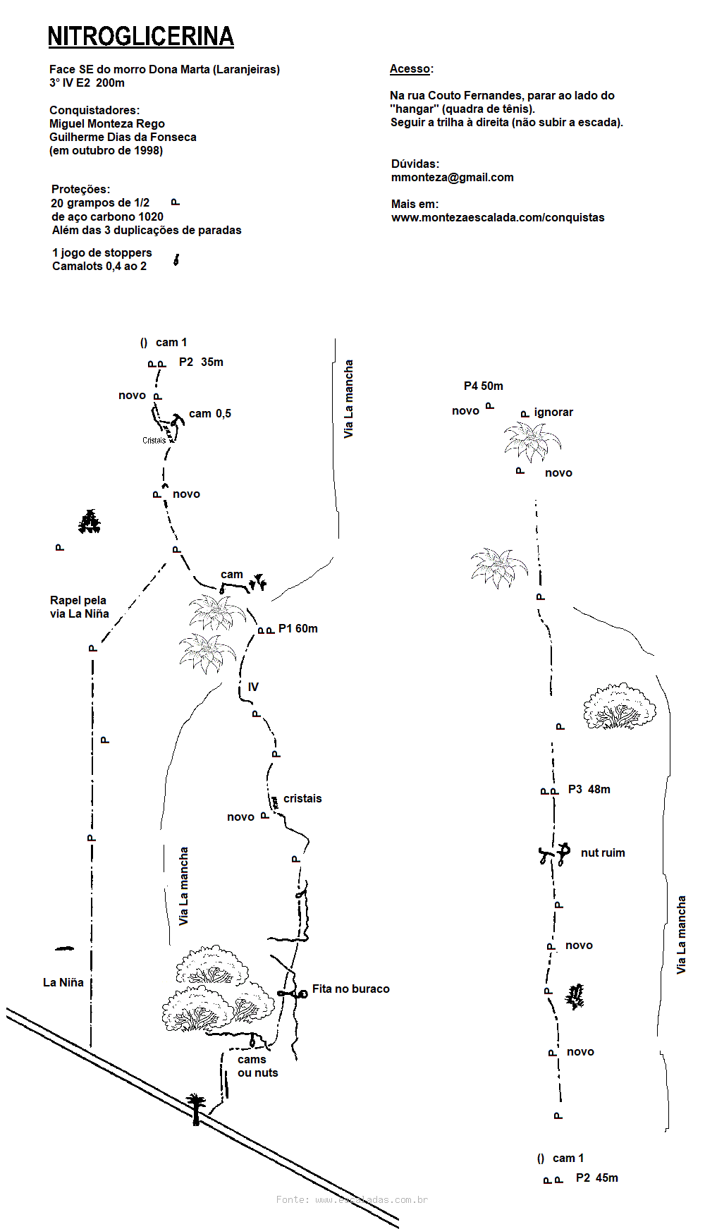 A trilha começa no final da Rua Couto Fernandes. Virar à direita. Outras vias neste setor: "variante La Mancha", "La Niña", "O Segredo do Abismo".