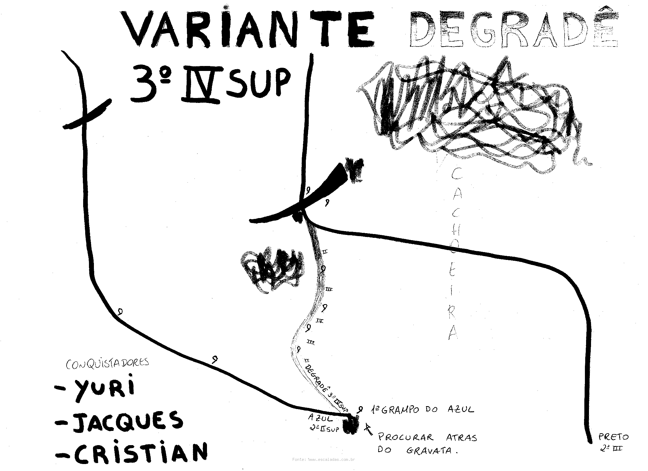 Descrição: Variante que substitui o início original do Pr. Preto, que está constantemente molhado e, por isso, acabou sendo abandonado. Começa um pouco mais vertical e depois se torna uma rampa.
